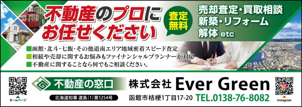 また、売却や査定に限らず、新築住宅建築・中古物件の売買・リフォームなども手掛けておりますので、住まい探しの際には是非エバーグリーンへお声がけ頂けると幸いです。